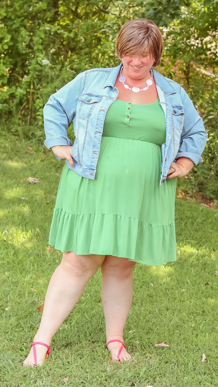 Luna-Sandals-Roots-Multi-Wrap-Styled-with-Dress-and-Jean-Jacket